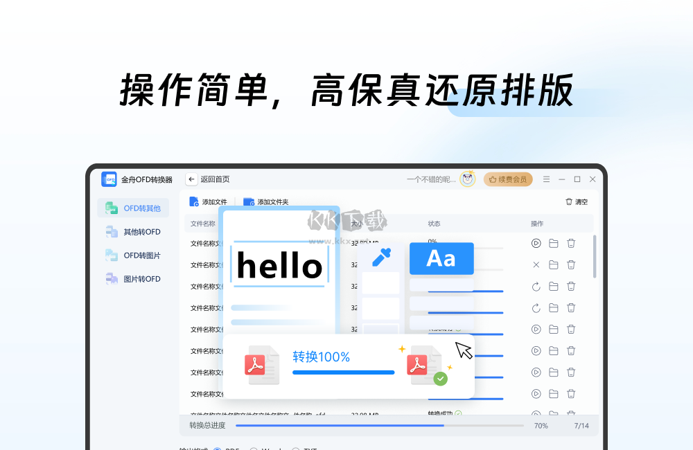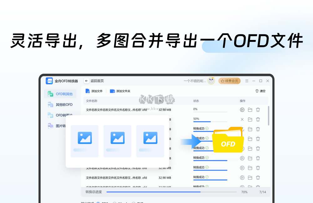 金舟OFD轉(zhuǎn)換器是一款功能強(qiáng)大的文件格式轉(zhuǎn)換應(yīng)用,軟件為用戶提供的超多超強(qiáng)大的功能,非常的方便快捷,軟件還非常的注重細(xì)節(jié)和美觀。它的界面設(shè)計精美,操作流暢,用戶體驗良好。通過金舟OFD轉(zhuǎn)換器,用戶可以輕松實現(xiàn)各種文件格式的轉(zhuǎn)換和處理,使工作和學(xué)習(xí)更加便捷高效,歡迎有需要的用戶到本站下載。