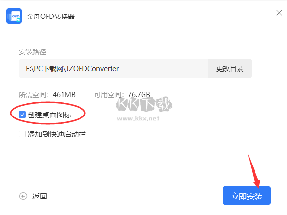 3、勾選創(chuàng)建桌面圖標(biāo),然后點擊立即安裝即可
