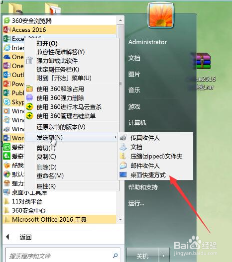 安裝完成后,可以到開始菜單里面找到Excel2016的程序,為了使用方便,我們可以給它創(chuàng)建桌面快捷方式,只需右擊Excel2016程序,然后單擊 發(fā)送到》桌面快捷方式 就可以了