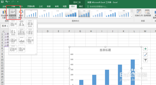 先插入一個圖表才可以對圖表進行快速布局。點擊快速布局。