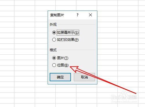 這時會彈出一個“復(fù)制圖片”的窗口,點擊選中“位圖”的選項。