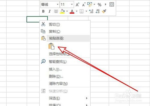 然后找到想要粘貼的位置,右鍵點擊單元格,在彈出菜單中選擇“粘貼”的菜單項。