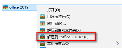 下載好安裝包后,鼠標右鍵解壓到“office 2019”