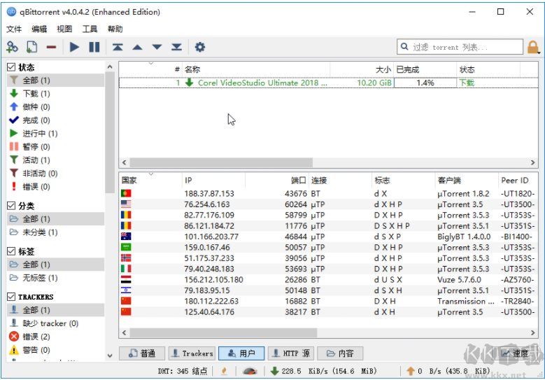qBittorrent中文版是一款免費(fèi)開源的輕量型BT客戶端軟件,功能非常強(qiáng)大,也是很多BT愛好者喜歡使用的一款工具,它可以在幾乎所有的系統(tǒng)上運(yùn)行,支竺BT種子搜索、磁力鏈接,私人種子,分布式散列表(DHT)、對等交換協(xié)議(PEX)、本地對等發(fā)現(xiàn)(LSD)、qBittorrent支持加密鏈接支持IP過濾,兼容IPv6,UPnP/natp-pmp端口轉(zhuǎn)發(fā)支持,其簡單易用一度受到用戶的喜愛。