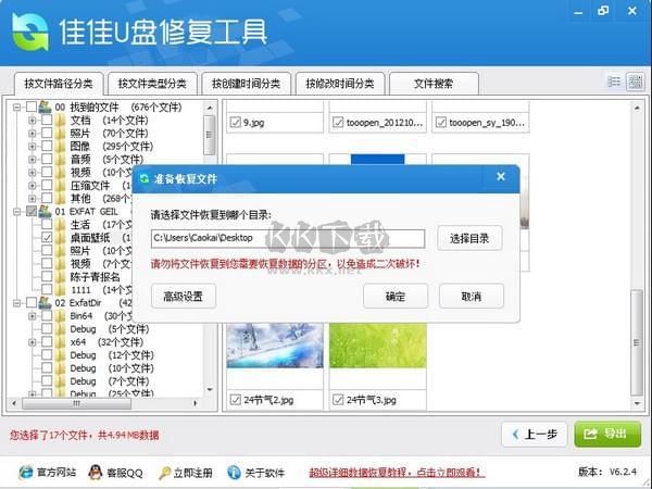 第四步、選擇導(dǎo)出目錄,點(diǎn)擊"確定"按鈕,恢復(fù)成功!