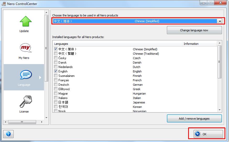 3、在下面紅框處選擇中文(簡體),然后確定就可以改成中文了。