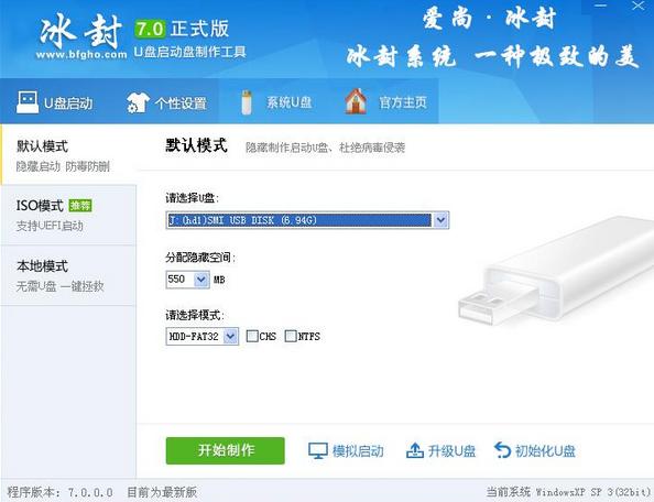 第二步:用冰封u盤啟動(dòng)盤制作工具制作啟動(dòng)盤