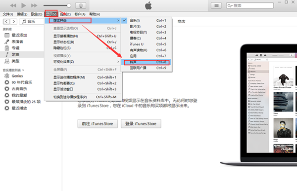 打開itunes軟件,點(diǎn)擊【顯示】→【媒體種類】→【鈴聲】。