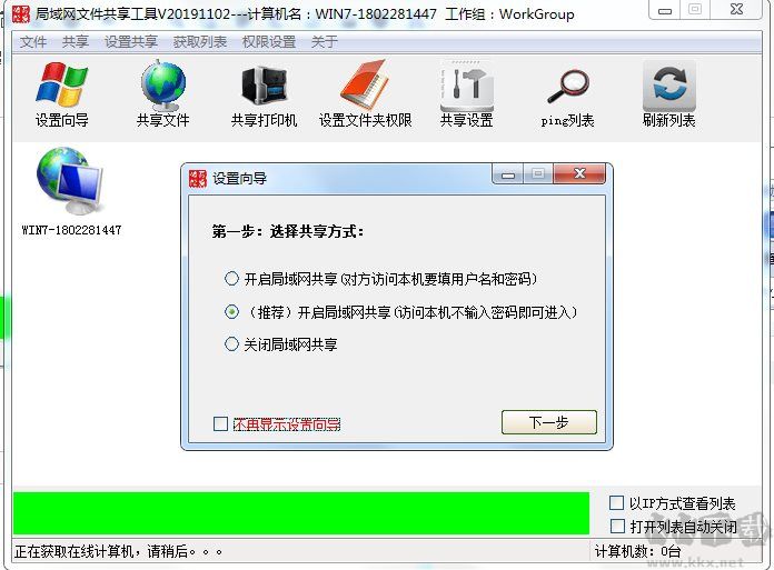 局域網(wǎng)共享是大家在局域網(wǎng)辦公環(huán)境中經(jīng)常需要設(shè)置的,但是設(shè)置通常來說也比較復(fù)雜,很多因素會導(dǎo)致共享失敗,共享不能訪問,如沒有權(quán)限等問題,這里小編分享一款最新2019年的局域網(wǎng)共享軟件,支持Win10,Win8,Win7,XP系統(tǒng),有共享文件設(shè)置,共享打印機(jī),設(shè)置共享文件權(quán)限等功能!有需要的大家可以試試。