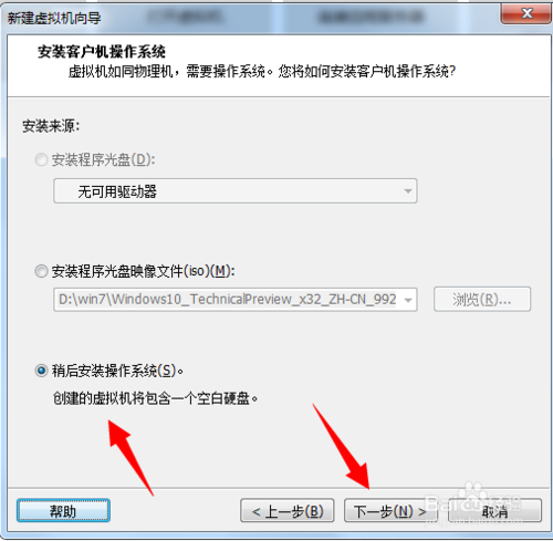 7、選擇【使用ISO鏡像文件】,將我們的Linux鏡像添加,下圖所示:www.sdyshb.cn