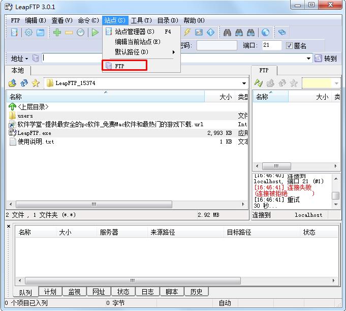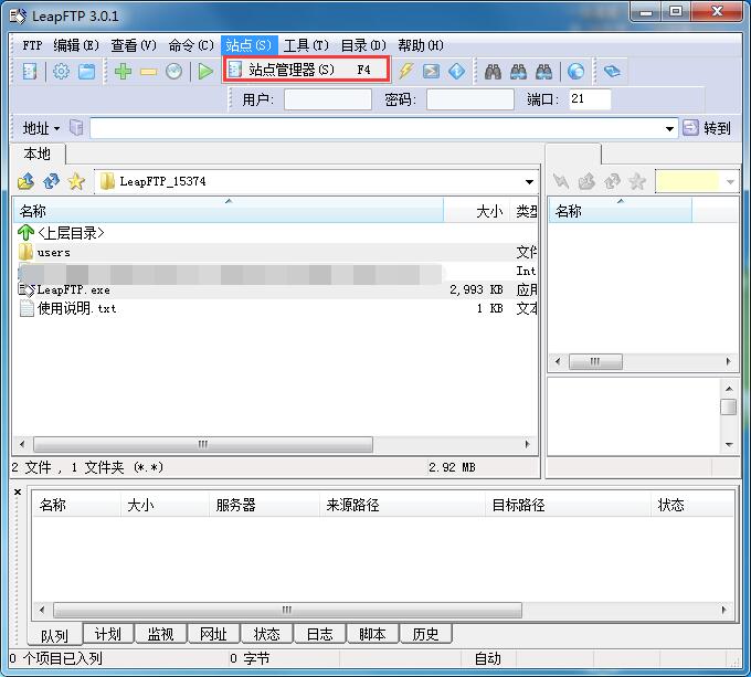 1、本站下載的LeapFTP只要解壓即可使用,已經漢化破解,無限制,無需注冊碼