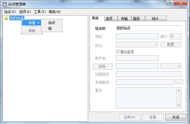 4、保存之后,點擊站點—站點名,就可以連接了。