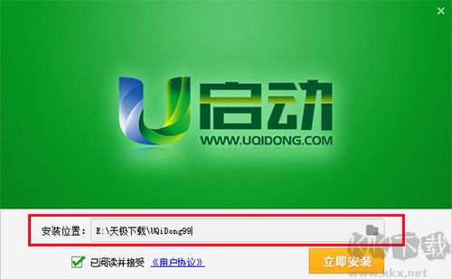 1.從本站下載U啟動(dòng)U盤啟動(dòng)盤制作工具,解壓后進(jìn)入安裝向,自定義安裝文件位置,單擊【立即安裝】
