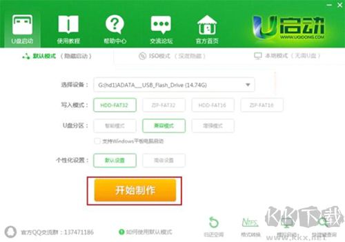 備注:關(guān)于寫入模式和U盤分區(qū),U啟動(dòng)為您推薦的為較佳模式,若無(wú)特別需求,您無(wú)需做任何改動(dòng)。