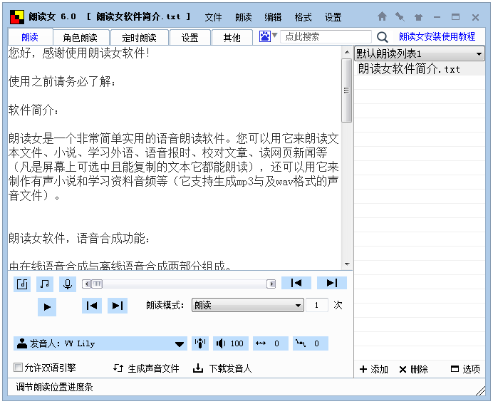 朗讀女軟件安裝完成,首次運(yùn)行,軟件界面!