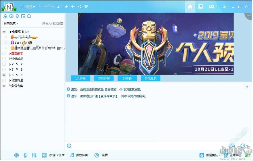 歪歪YY語音是很多用戶平時(shí)常用的語音聊天工具,不管是打游戲還是游戲直播都非常好用手,語音音質(zhì)也非常好~不過原方原版可能廣告有點(diǎn)多,還有不能多開的限制,本版由KK下載站整理的去廣告版本,可以讓你在語音時(shí)更加清凈,避免廣告干擾你的游戲。同時(shí)支持無限多開,禁用游戲大廳等無用的組件,及升級(jí)功能,