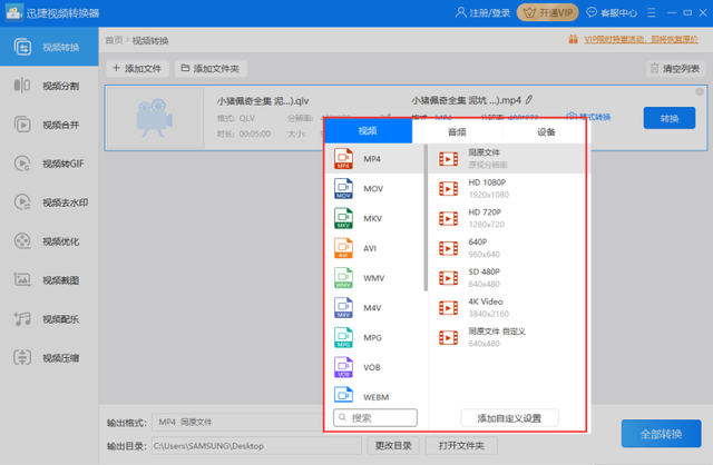 QLV是騰訊視頻下載的一種視頻文件格式,在騰訊下載的視頻,只能在騰訊軟件上觀看,對于沒有下載軟件的人來說是件麻煩的事情,所以我們可以將其格式轉(zhuǎn)換成MP4等,以便在其他播放器上也能觀看視頻。