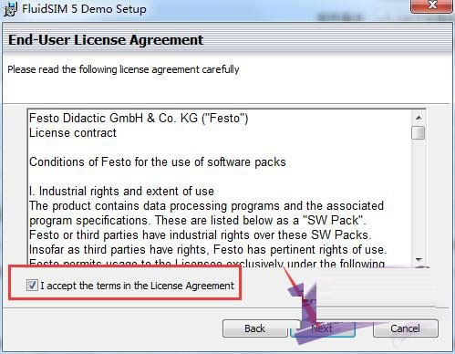 4、按照安裝向?qū)崾?,?lái)到FluidSIM 5 Demo安裝界面,選擇我同意協(xié)議,點(diǎn)擊next