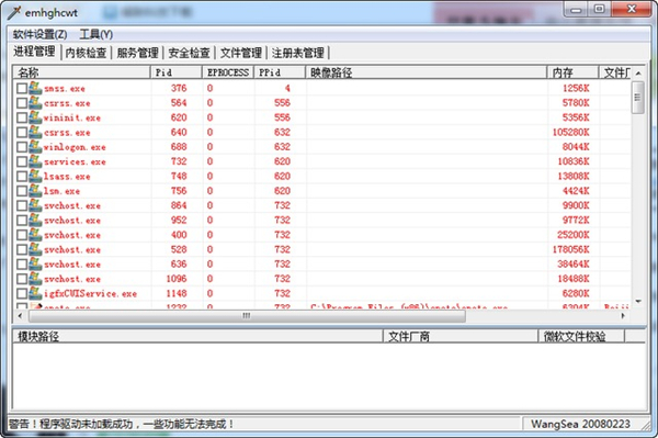 2:有關(guān)Wsyscheck運(yùn)行后通知欄的提醒“警示!程序流程驅(qū)動(dòng)未載入取得成功,一些功能沒(méi)法進(jìn)行。”