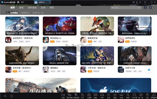 在模擬器窗口界面下方點(diǎn)擊安裝完成的游戲,進(jìn)行功能設(shè)置和鍵盤映射等功能操作。分辨率和內(nèi)存,分辨率:就是模擬器界面的大小。現(xiàn)在網(wǎng)易可以設(shè)置三種分辨率大小。設(shè)置完成后請(qǐng)重啟游戲完成分辨率更改。內(nèi)存:模擬器安裝的最低內(nèi)存要求