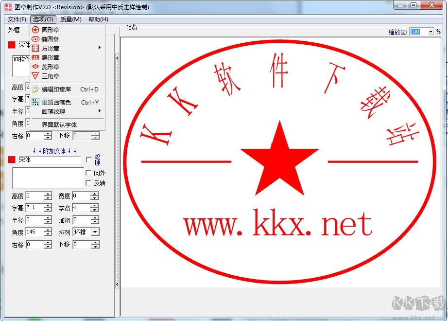 圖章制作軟件綠色破解版是一款免費(fèi)好用的電子圖章制作軟件,主要提供了圓形章、橢圓章、方形章、扁形章、菱形章、三角章等多種目前主流的印章!相比之下非常的專業(yè),各種設(shè)置參數(shù)可以幫助你制作出各種各樣的電子印章,并導(dǎo)出圖章格式為PNG(透明格式),方便您將圖章嵌入到其它軟件中使用