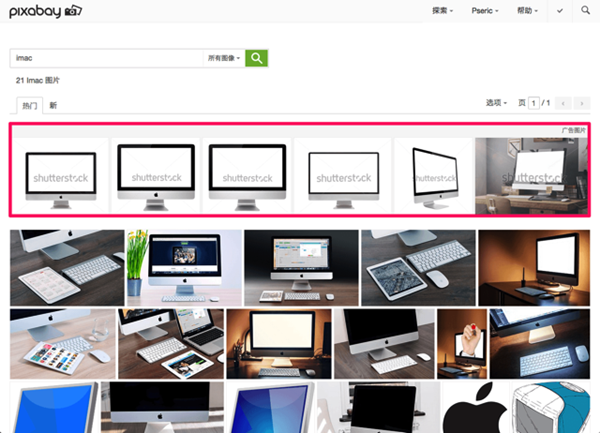 在 Pixabay 進(jìn)行搜尋查找時,搜尋結(jié)果最上方會有一排 Shutterstock 的廣告圖片,記得這些圖片是贊助商提供的,并不是免費(fèi)的喔!這是為了提供 Pixabay 營運(yùn)所需資金而加入的廣告功能,如果你要找免費(fèi)圖片的話,記得不要點(diǎn)錯位置。