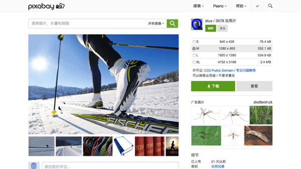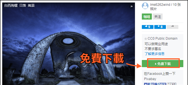 一般來說,Pixabay 網(wǎng)站內(nèi)的圖片都是以 CC0 Public Domain 授權(quán),可以做為商業(yè)用途且不要求署名。Pixabay 提供的相片尺寸由小到大都有,且都可免費(fèi)下載喔!選擇你要獲取的圖片,點(diǎn)選底下的「下載」按鈕就能取得相片。