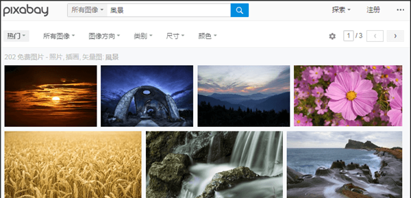 開啟 Pixabay 網(wǎng)站后,直接從首頁輸入要查找的圖片關(guān)鍵詞,或者點(diǎn)選首頁挑選的精選圖片,就能找到相關(guān)的搜尋結(jié)果。使用 Pixabay 來下載圖片必須要注冊、登入賬號,還好注冊也是不用花錢的,第一次使用時建議先點(diǎn)選右上角的「注冊」來取得賬號。