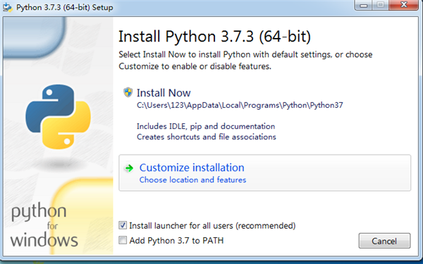 1、將kk下載分享的壓縮包下載到本地,下載載Python壓縮包并解壓(推薦360壓縮:http://www.winwin7.com/soft/xtgj-746.html),在電腦本地得到一個(gè).exe文件,雙擊.exe文件進(jìn)入軟件安裝界面,您可以點(diǎn)擊【Install Now】軟件會(huì)默認(rèn)安裝,或者您可以點(diǎn)擊【customize Installation】自定義安裝。然后您可以勾選【Add Python to PATH】添加環(huán)境變量。