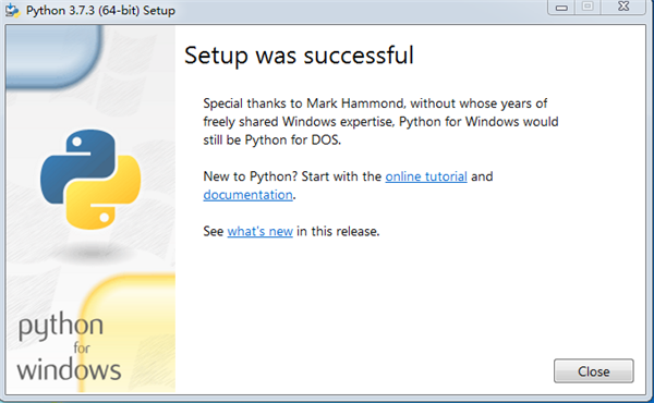 4、Python安裝完成,點(diǎn)擊【close】退出軟件安裝。