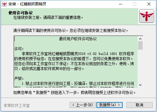 2、同意紅蜻蜓屏幕截圖工具的實(shí)用協(xié)議,點(diǎn)擊我接受