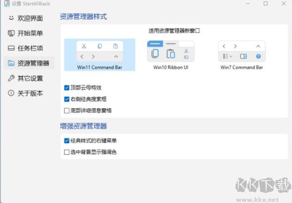 StartAllBack 內(nèi)置了一項經(jīng)典右鍵復(fù)原功能,首先進(jìn)入它的主界面,打開“資源管理器-增強(qiáng)資源管理器”標(biāo)簽,接下來勾選“經(jīng)典樣式的右鍵菜單”。