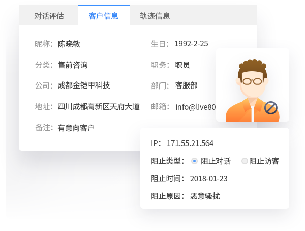 智能識別訪客身份,在服務(wù)中無縫查看會員的真實資料,幫助客服讀懂用戶,提高溝通效率與營銷精準(zhǔn)化。