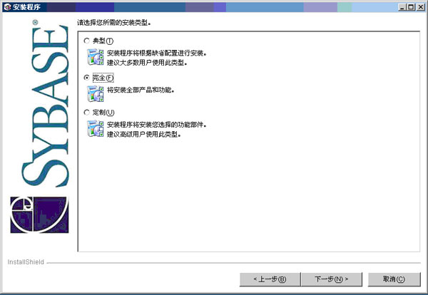 8、選擇你所要安裝的類型,根據(jù)自己的需要來選擇功能安裝,這里建議選擇“完全”安裝,免得功能不全,在使用的時候出現(xiàn)錯誤,麻煩,詳細(xì)如上圖,然后在點(diǎn)擊“下一步”