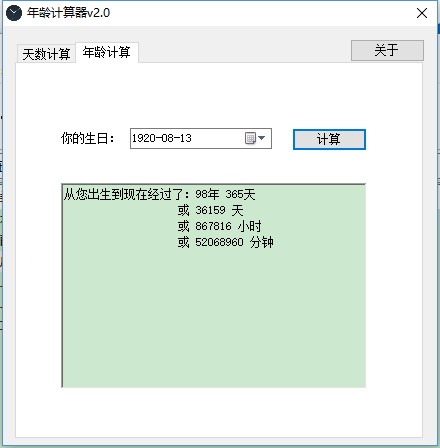 這款軟件的年齡計(jì)算功能在超過(guò)一定年齡的時(shí)候會(huì)報(bào)錯(cuò),請(qǐng)?jiān)谌祟惡侠淼哪挲g范圍內(nèi)進(jìn)行年齡計(jì)算