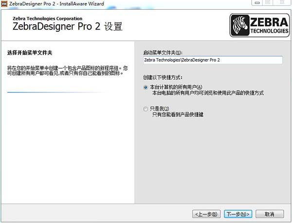 5、選擇開始菜單文件夾以及選擇為本臺計算機(jī)所有用戶安裝。