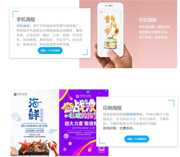 創(chuàng)客貼提供的印刷海報模板,均按印刷尺寸規(guī)格設(shè)計,在完成設(shè)計后,您可以保存、下載作品。下載的海報文件可直接用于印刷。