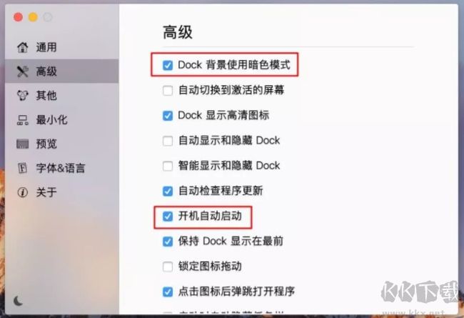 在高級面板中,你可以更改Dock面板的背景顏色、設置Dock開機自啟動。