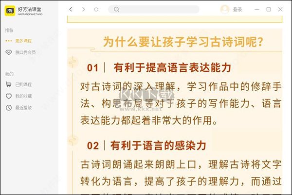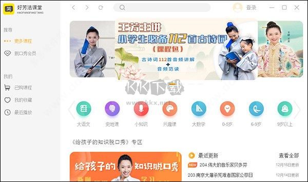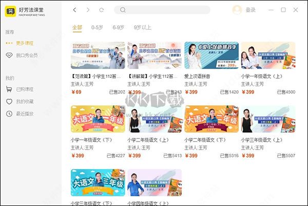 1、好芳法課堂界面如圖所示,顯示多種課程資源,可以在軟件查看語文、數(shù)學。