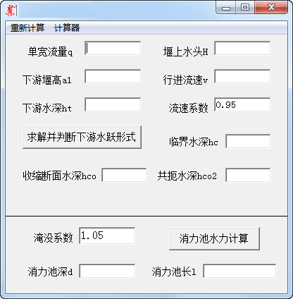 1、支持輸入單寬流量、堰上水頭、下游堰高等信息