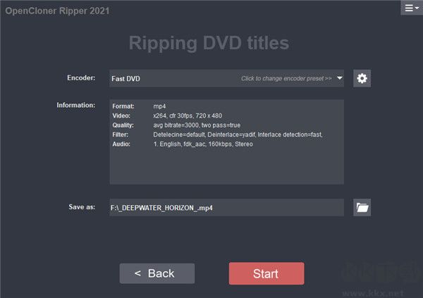 步驟3:設(shè)定“編碼器”。選擇“快速DVD”預(yù)設(shè),然后單擊“開(kāi)始”。