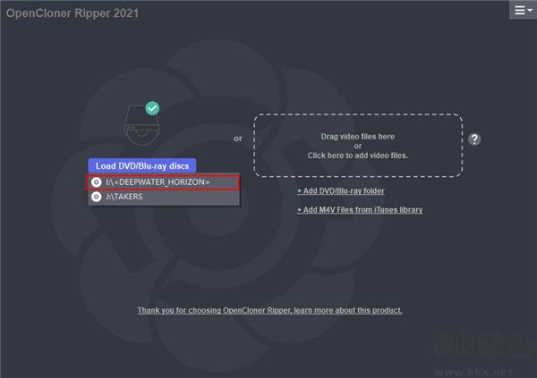 步驟1:將DVD放入驅(qū)動(dòng)器中,然后啟動(dòng)OpenCloner Ripper。然后單擊“加載DVD/藍(lán)光光盤(pán)”按鈕,然后選擇相應(yīng)的DVD標(biāo)簽。