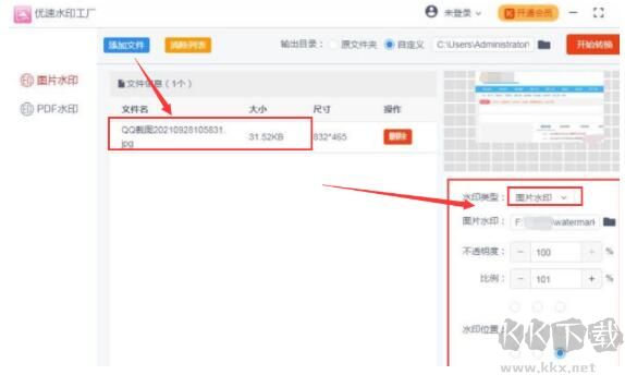 2.導(dǎo)入圖片后,在水印類型欄目中選擇圖片水印,并適當(dāng)修改水印參數(shù)