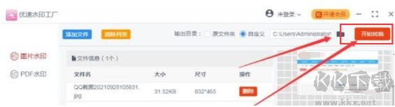 3.完成設(shè)置后,為圖片選擇保存路徑,點擊開始轉(zhuǎn)換按鈕