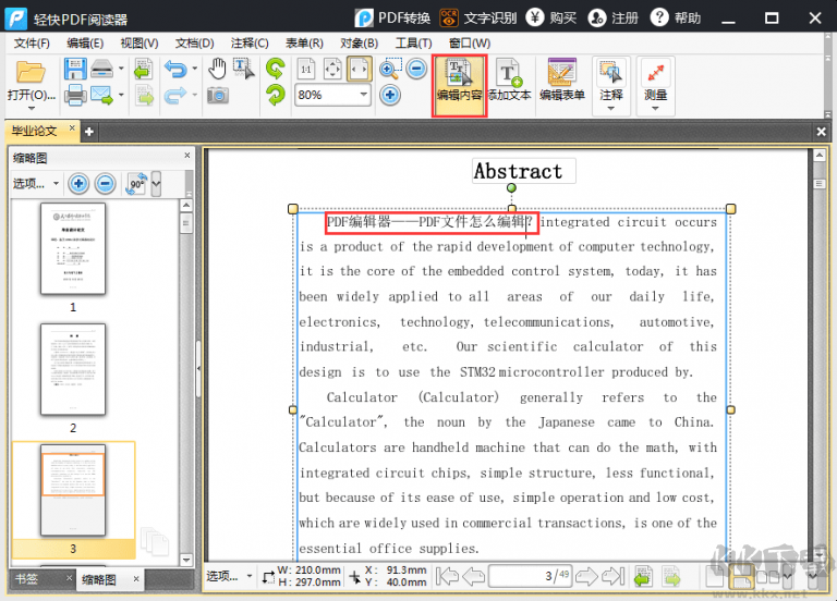 打開PDF文件后,選擇工具欄中的“編輯內(nèi)容”按鈕,然后光標(biāo)插入文本內(nèi)容中,即可開始修改PDF內(nèi)容了!