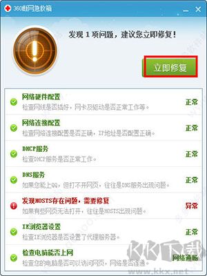 3.最后,360斷網(wǎng)急救箱會出現(xiàn)診斷結(jié)果,我們只需要單擊【立即修復(fù)】即可。
