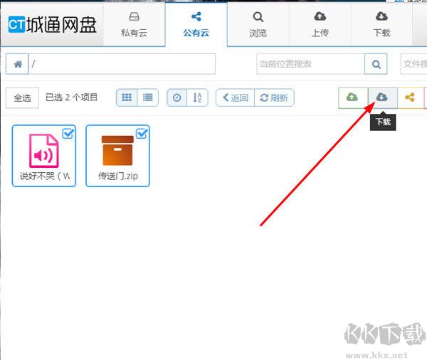 2、接著回到私有云或公有云中,選擇你想要下載的資源文件,點擊“下載”選項開始下載,如下圖所示: