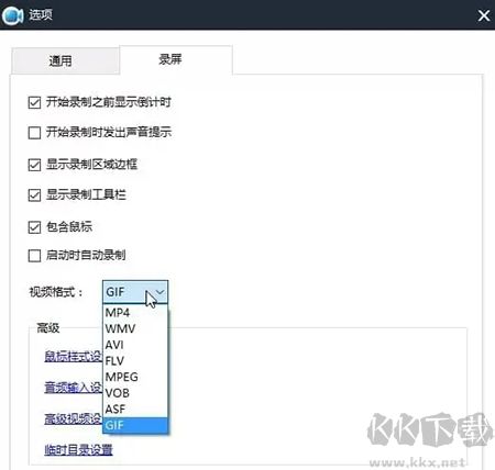 錄制的視頻格式默認(rèn)是WMV,如果你需要錄制成其他的格式,你可以在“工具”中的“選項(xiàng)”界面,選擇“錄屏”設(shè)置,然后在“視頻格式”中選取你所需要的輸出格式。