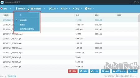 在錄屏之前最好選擇一下音頻的輸入。你可以選擇四種音頻輸入來源:“無”、“系統(tǒng)聲音”、“麥克風(fēng)”以及“系統(tǒng)聲音和麥克風(fēng)”。選擇你需要的一種。