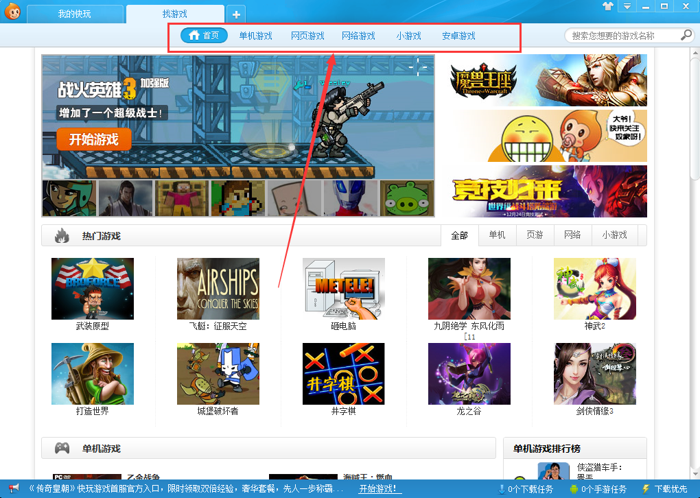 快玩游戲盒是包含眾多游戲資源的一款游戲下載安裝工具,曾經(jīng)有很多玩家都是通過快玩游戲盒來搜索和下載各種單機(jī)游戲的,比如魔獸爭霸、虐殺原形等等。快玩游戲盒可以自動幫助玩家安裝游戲運(yùn)行庫,用戶無需擔(dān)心下載單機(jī)游戲后卻無法運(yùn)行的尷尬情況,所有游戲下載即玩,十分方便。此外快玩游戲盒中還提供了海量網(wǎng)頁游戲、小游戲,可以滿足不同玩家的游戲需求,有興趣的朋友趕緊下載體驗(yàn)吧!